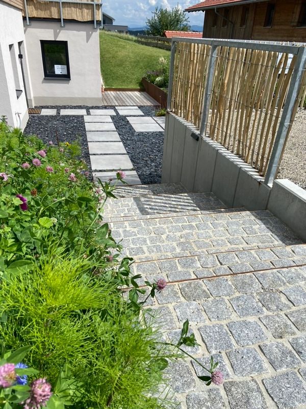 Der Ettensberger Weg 1 befindet sich gegenüber der Hausnummer 3. Das ist manchmal verwirrend. Das Holzhaus der Nummer 1 hat auf der rechten Seite ausgewiesene Parkplätze und eine Außentreppe führt zum Eingang der Praxis.